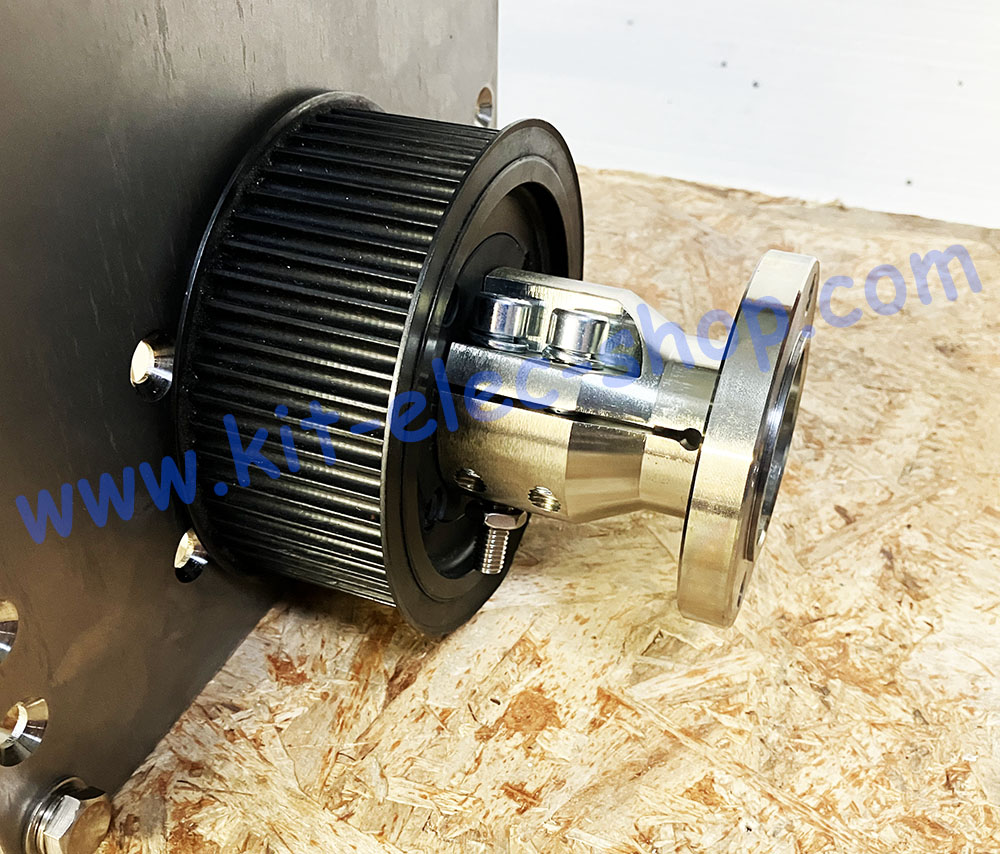Install the two 50mm-wide belt transmissions, remembering to fit the keys on the shaft.