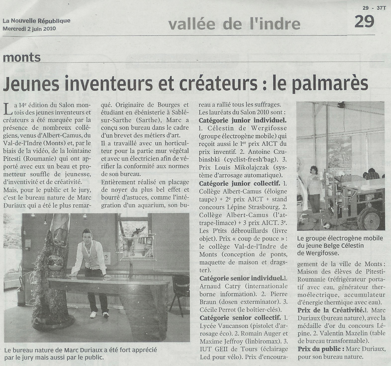 - Site : www.lanouvellerepublique.fr Jeunes inventeurs et créateurs : le palmarès