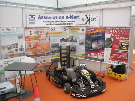 Parmis les stands présent du vendredi 8 octobre au dimanche 10 octobre 2010, vous pouviez visiter celui de l'Association e-Kart qui présentait un kart électrique bi-moteur de compétition.