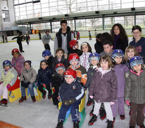 La patinoire accueille un public très varié. Ici, un centre de loisirs