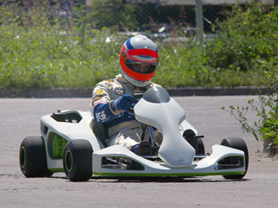 La structure du kart a été spécialement conçue pour offrir plus de sécurité au conducteur en cas de collision. Le siège a été réalisé avec de la fibre de verre, de la mousse et du tissu recyclé à la fois pour des raisons de sécurité et pour l’ergonomie.