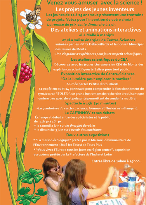 La 16ème édition du salon des jeunes inventeurs et créateurs à Monts aura lieu les 2 et 3 juin 2012