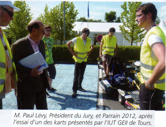 M. Paul LEVY, Président du Jury et Parrain de l'édition 2012, après l'essai d'un des karts présentés par l'Université de Tours
