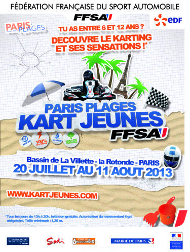 Du 20 juillet au 11 août 2013, La Fédération Française du Sport Automobile fait étape à Paris Plages et installe une piste de karting électrique de 150 mètres de long près du bassin de La Villette.