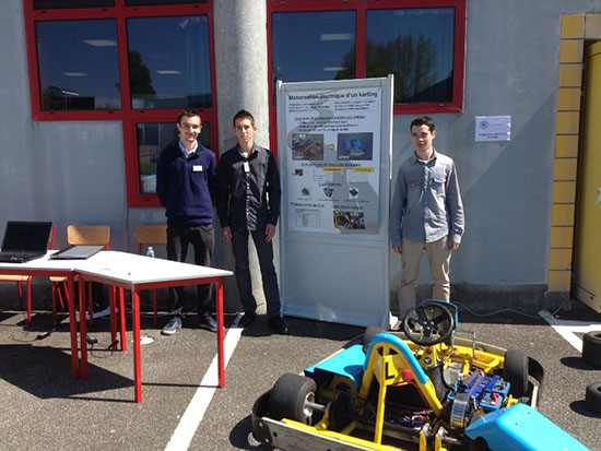 Les élèves de STI2D EE du lycée Polyvalent Raymond Queneau d'Yvetot (76) ont travaillé sur un kart à motorisation électrique. Ils ont procédé au dimensionnement de la chaine d'énergie ainsi que de la gestion et le stockage d'énergie.
